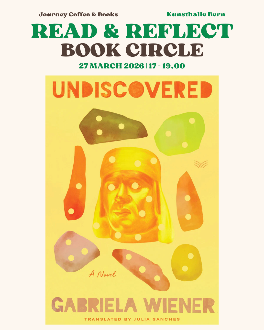 You are not expected to finish the book before the event, limited copies available at KHB. Registration is not necessary. This is a collaboration between Journey Coffee & Books and Kunsthalle Bern.